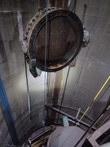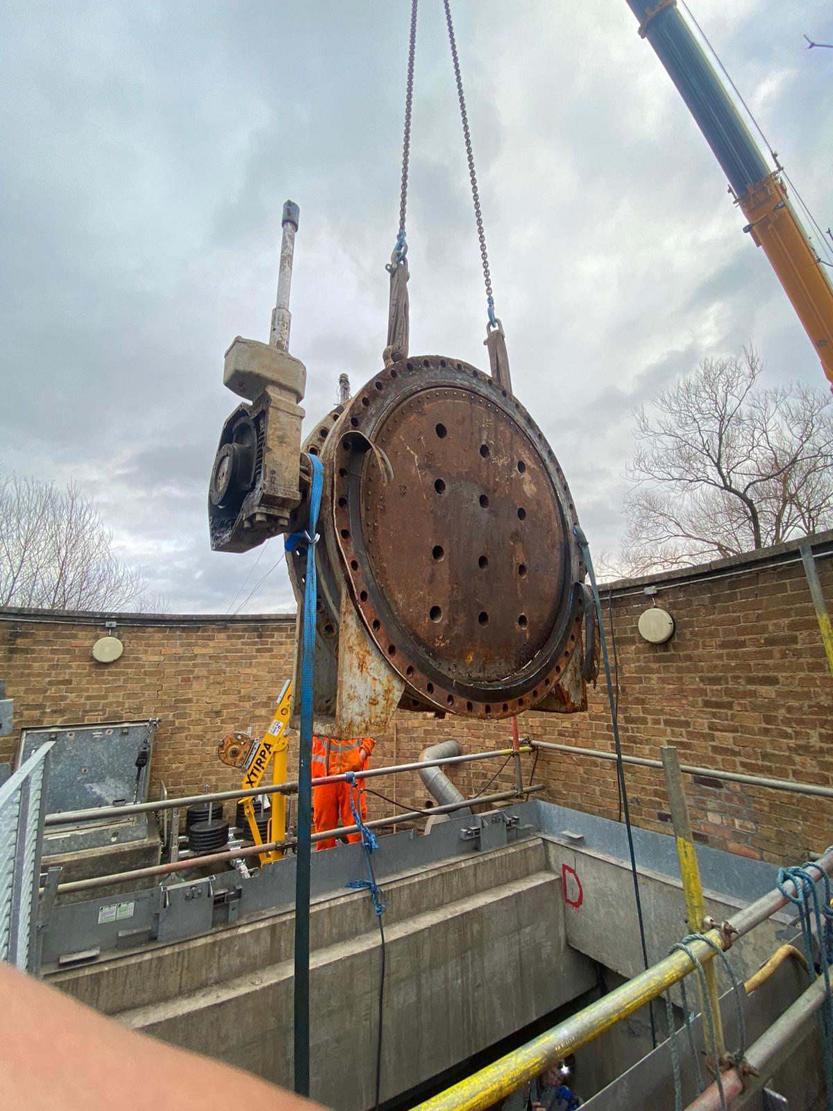 Works included the replacement of three DN1800 butterfly valves, each weighing more than 5t. Two of these were located at a depth of 40m within shaft 6 at Moor Lane. The other was within shaft 5 at Horton, at 35m depth. There were also seven DN450 gate valves to replace along the bypass systems within shafts M and A. The replacement at Moor Lane was particularly challenging due to the congested nature of the shaft basement and the fact that there was no direct lift to the surface for one of the valves. This required a bespoke lifting solution, which comprised I-beams, chain blocks, specialist moving skates and a ratchet system. The existing valve in Horton had been concreted in place during the original installation. This required breakout works and specialist tooling to safely remove seized bolts in confined and tight working conditions.