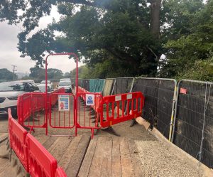 Key actions included the design and installation of a bespoke trackway to prevent root damage, and the establishment of a clearly defined exclusion zone to keep heavy vehicles away from sensitive ground. Ground protection measures were developed using combined civils and arboricultural expertise, extending 18.3m from the trunk, and designed to distribute vehicle loads and prevent soil compaction in line with specialist guidance